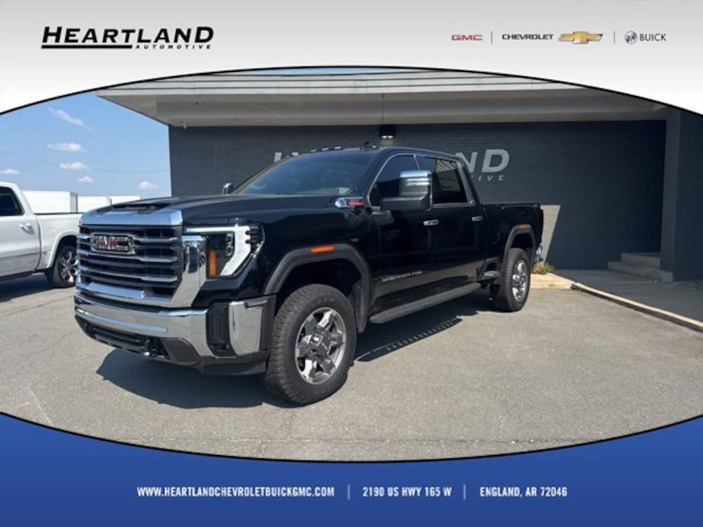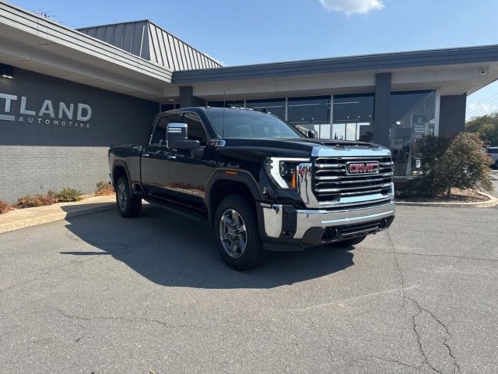 Onyx Black 2025 GMC Sierra 2500HD SLT 4WD 10-Speed Automatic Duramax 6.6L V8 Turbodiesel 10-Speed Automatic, 4WD, Dark Walnut/Slate Leather.