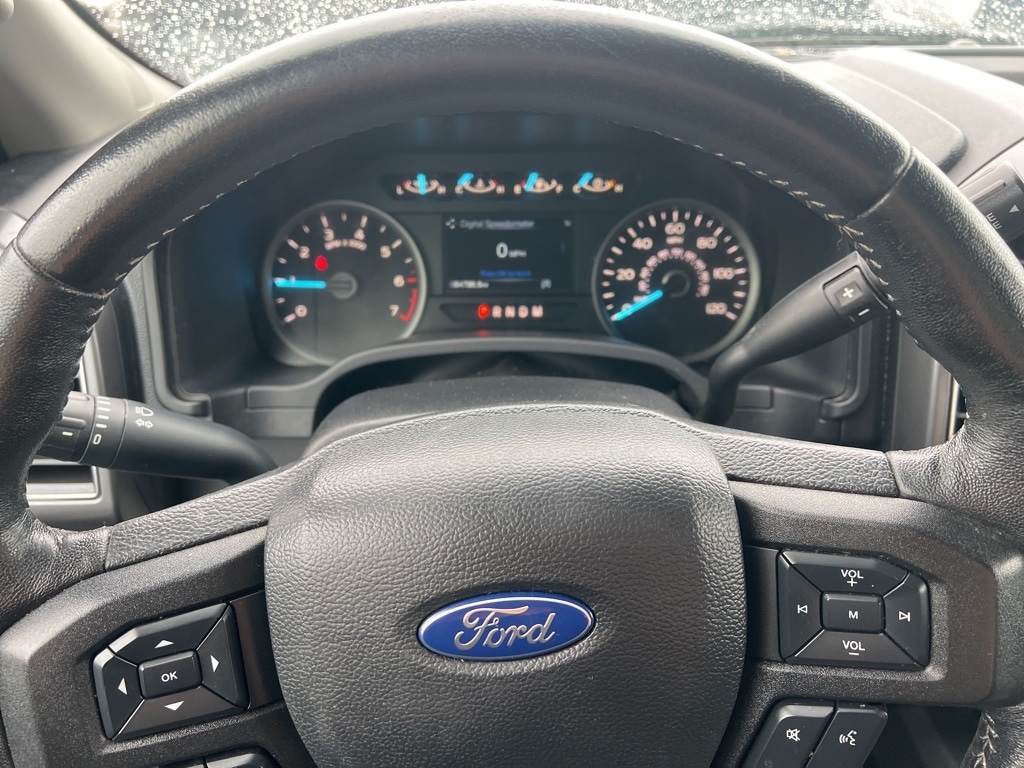 This 2019 Ford F-150 XLT in Oxford White comes with the following features: 2.7L V6 EcoBoost 10-Speed Automatic RWD Equipment Group 301A Mid (4.2" Productivity Screen in Instrument Cluster, 8-Way Power Driver Seat, Auto-Dimming Rear-View Mirror, Cloth 40/20/40 Front Seat, Fixed Backlight w/Privacy Glass, Leather-Wrapped Steering Wheel, Power Glass Heated Sideview Mirrors, Power-Adjustable Pedals, Rear Under-Seat Storage, Rear Window Defroster, and SiriusXM Radio), Trailer Tow Package, 110V/400W Outlet, 4-Wheel Disc Brakes, 6 Speakers, ABS brakes, Air Conditioning, Alloy wheels, AM/FM radio, AppLink/Apple CarPlay and Android Auto, Auto High-beam Headlights, BoxLink, Brake assist, Bumpers: chrome, Compass, Delay-off headlights, Driver door bin, Driver vanity mirror, Dual front impact airbags, Dual front side impact airbags, Electronic Stability Control, Emergency communication system: SYNC 3 911 Assist, Exterior Parking Camera Rear, Front anti-roll bar, Front Center Armrest w/Storage, Front fog lights, Front License Plate Bracket, Front wheel independent suspension, Fully automatic headlights, Illuminated entry, Low tire pressure warning, Occupant sensing airbag, Outside temperature display, Overhead airbag, Panic alarm, Passenger door bin, Passenger vanity mirror, Power door mirrors, Power steering, Power windows, Radio data system, Radio: AM/FM Stereo w/6 Speakers, Rear step bumper, Remote keyless entry, Reverse Sensing System, Security system, Speed control, Speed-sensing steering, Split folding rear seat, Steering wheel mounted audio controls, SYNC 3, Tachometer, Telescoping steering wheel, Tilt steering wheel, Tough Bed Spray-In Bedliner, Traction control, Variably intermittent wipers, Voltmeter, and Wheels: 17" Silver Painted Aluminum.