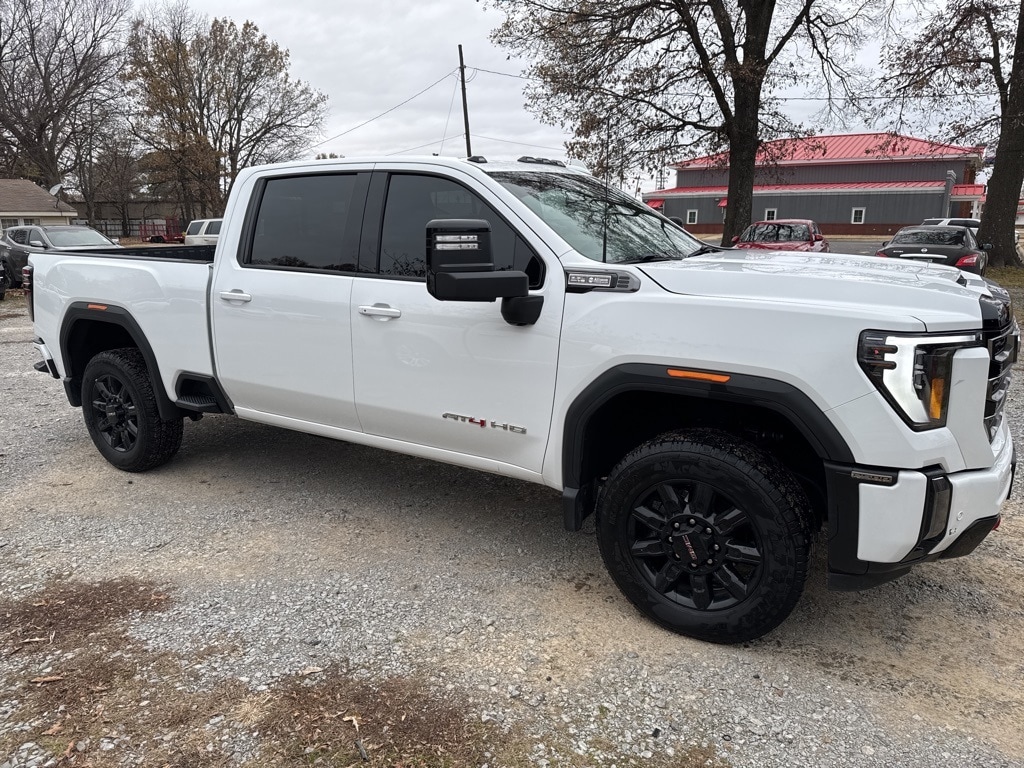 This 2024 GMC Sierra 2500HD AT4 in Summit White comes with the following features: 6.6L V8 10-Speed Automatic 4WD AT4 Preferred Package (Adaptive Cruise Control, LED Smoked Amber Roof Marker Lamps, Power Sliding Rear Window w/Defogger, and Universal Home Remote), Preferred Equipment Group 4SB (120-Volt Bed Mounted Power Outlet, 120-Volt Instrument Panel Power Outlet, 2 Charge-Only Rear USB Ports, 2 Charge/Data USB Ports Inside Center Console, 2 USB Ports, 2-Speed Active Transfer Case, Bed View Camera w/2 Trailer Camera Provisions, Bose Premium 7-Speaker Sound System, Deep-Tinted Glass, Electric Rear-Window Defogger, Floor-Mounted Center Console, Front Prem Floor Liners w/Removable Carpet Insert, Front Rain-Sensing Wipers, Gloss Black Header Grille & Grille Insert Bars, GMC Connected Access Capable, HD Surround Vision, Heated 2nd Row Outboard Seats, Heated Driver & Front Outboard Passenger Seats, Integrated Trailer Brake Controller, Keyless Open & Start, LED Cargo Area Lighting, Manual Tilt-Wheel/Telescoping Steering Column, OnStar & GMC Connected Services Capable, Power Front Passenger Windows w/Express Up/Down, Push Button Start, Rear Cross Traffic Alert, Rear Prem Floor Liners w/Removable Carpet Insert, Rear Wheelhouse Liners, Remote Vehicle Starter System, Safety Alert Seat, SiriusXM w/360L, Spray-On Bedliner w/AT4 Logo, Steering Wheel Audio Controls, Trailer Cam Provisions & Trailer Viewing Software, Trailer Side Blind Zone Alert, Ultrasonic Front & Rear Park Assist, Unauthorized Entry Theft-Deterrent System, Ventilated Driver & Front Passenger Seats, Wireless Charging, and Wireless Phone Projection), X31 Off-Road Package (Hill Descent Control), 10-Speed Automatic, 4WD, Jet Black With Kalahari Accents Leather, 10-Way Power Driver Seat Adjuster w/Lumbar, 10-Way Power Passenger Seat Adjuster w/Lumbar, 3.73 Rear Axle Ratio, 4-Wheel Disc Brakes, 7 Speakers, ABS brakes, Air Conditioning, Alloy wheels, AM/FM radio: SiriusXM with 360L, Apple CarPlay/Android Auto, Auto High-beam Headlights, Auto-dimming door mirrors, Auto-dimming Rear-View mirror, Automatic Emergency Braking, Automatic temperature control, Brake assist, Buckle to Drive, Bumpers: body-color, Compass, Delay-off headlights, Driver door bin, Driver Memory, Driver vanity mirror, Dual front impact airbags, Dual front side impact airbags, Electronic Stability Control, Following Distance Indicator, Forward Collision Alert, Front anti-roll bar, Front Bucket Seats, Front Center Armrest, Front dual zone A/C, Front fog lights, Front License Plate Kit, Front Pedestrian Braking, Front reading lights, Front wheel independent suspension, Fully automatic headlights, Heated door mirrors, Heated front seats, Heated rear seats, Heated steering wheel, Heavy-Duty 80 Amp Battery, Hitch Guidance w/Hitch View, Illuminated entry, In-Vehicle Trailering System App, IntelliBeam Automatic High Beam On/Off, Lane Departure Warning System, Low tire pressure warning, Memory seat, Occupant sensing airbag, Off-Road Suspension, Outside temperature display, Overhead airbag, Overhead console, Panic alarm, Passenger door bin, Passenger vanity mirror, Perforated Leather-Appointed Front Seat Trim, Pickup Box, Power door mirrors, Power driver seat, Power passenger seat, Power steering, Power windows, Premium audio system: Premium GMC Infotainment System, Radio: AM/FM w/Premium GMC Infotainment System, Rain sensing wipers, Rear reading lights, Rear seat center armrest, Rear step bumper, Rear window defroster, Remote keyless entry, Security system, Speed control, Speed-sensing steering, Split folding rear seat, Steering wheel mounted audio controls, Tachometer, Telescoping steering wheel, Tilt steering wheel, Traction control, Trip computer, Turn signal indicator mirrors, Variably intermittent wipers, Ventilated front seats, Voltmeter, and Wheels: 20" High Gloss Black 8 Spokes Aluminum. 10-Speed Automatic, 4WD, Jet Black With Kalahari Accents Leather.