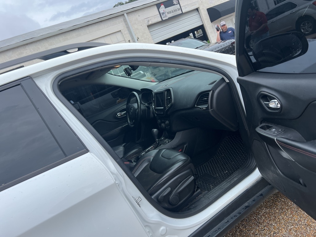 This 2020 Jeep Cherokee Trailhawk in Bright White Clearcoat comes with the following features: 3.2L V6 9-Speed 948TE Automatic 4WD Cold Weather Group (Engine Block Heater, Heated Front Seats, Heated Steering Wheel, Leather Wrapped Steering Wheel, and Windshield Wiper De-Icer), Quick Order Package 27E Trailhawk, 3.517 Axle Ratio, 4-Wheel Disc Brakes, 6 Speakers, 8.4" Touchscreen Display, ABS brakes, Air Conditioning, Alloy wheels, AM/FM radio: SiriusXM, Anti-whiplash front head restraints, Apple CarPlay, Apple CarPlay/Android Auto, Automatic temperature control, AutoStick Automatic Transmission, Auxiliary Transmission Oil Cooler, Brake assist, Cloth/Premium Vinyl Bucket Seats, Compass, Delay-off headlights, Driver door bin, Driver vanity mirror, Dual Bright Exhaust Tips, Dual front impact airbags, Dual front side impact airbags, Electronic Stability Control, Engine Oil Cooler, Exterior Mirrors Courtesy Lamps, Exterior Mirrors w/Supplemental Signals, Four wheel independent suspension, Front anti-roll bar, Front Bucket Seats, Front Center Armrest, Front dual zone A/C, Front fog lights, Front reading lights, Fully automatic headlights, Google Android Auto, GPS Antenna Input, Heated door mirrors, Hill Descent Control, Illuminated entry, Integrated Voice Command w/Bluetooth, Knee airbag, Leather Shift Knob, Low tire pressure warning, Occupant sensing airbag, Off Road Suspension, Outside temperature display, Overhead airbag, Overhead console, Panic alarm, ParkView Rear Back-Up Camera, Passenger door bin, Passenger vanity mirror, Power door mirrors, Power driver seat, Power steering, Power windows, Radio data system, Radio: Uconnect 4 w/8.4" Display, Rear anti-roll bar, Rear reading lights, Rear seat center armrest, Rear side impact airbag, Rear window defroster, Rear window wiper, Remote keyless entry, Roof rack: rails only, SiriusXM Satellite Radio, Speed control, Speed-sensing steering, Split folding rear seat, Spoiler, Steering wheel mounted audio controls, Stop-Start Multiple VSM System, Tachometer, Telescoping steering wheel, Tilt steering wheel, Traction control, Trip computer, Turn signal indicator mirrors, USB Host Flip, Variably intermittent wipers, Voltmeter, Wheels: 17" x 7.5" Black Painted Aluminum, and Wheels: 17" x 7.5" Painted Diamond Cut Aluminum.